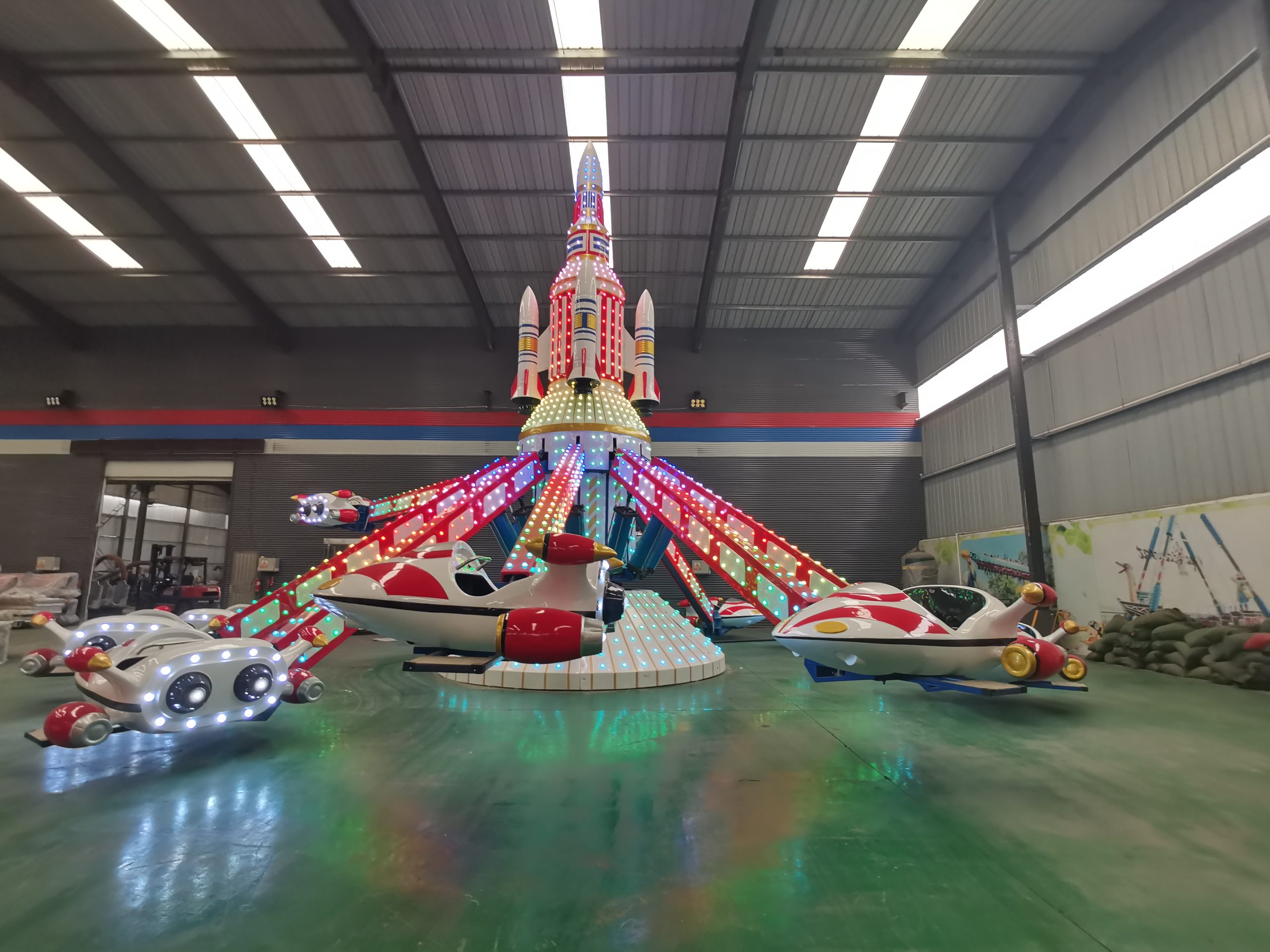 One of the defining features of this ride is its intelligent LED lighting system, capable of creating multi-mode visual effects. By day, the rocket-shaped design highlights futuristic styling with sleek contours and realistic detailing. By night, its dazzling illumination transforms it into a mesmerizing centerpiece, captivating visitors and energizing the entire venue.